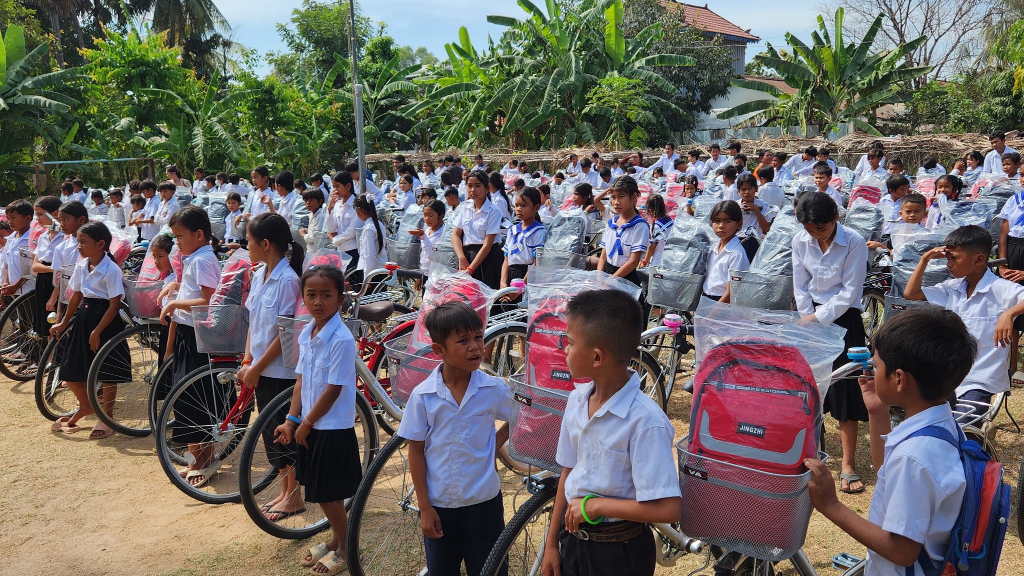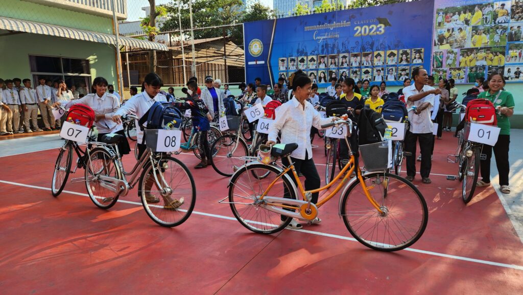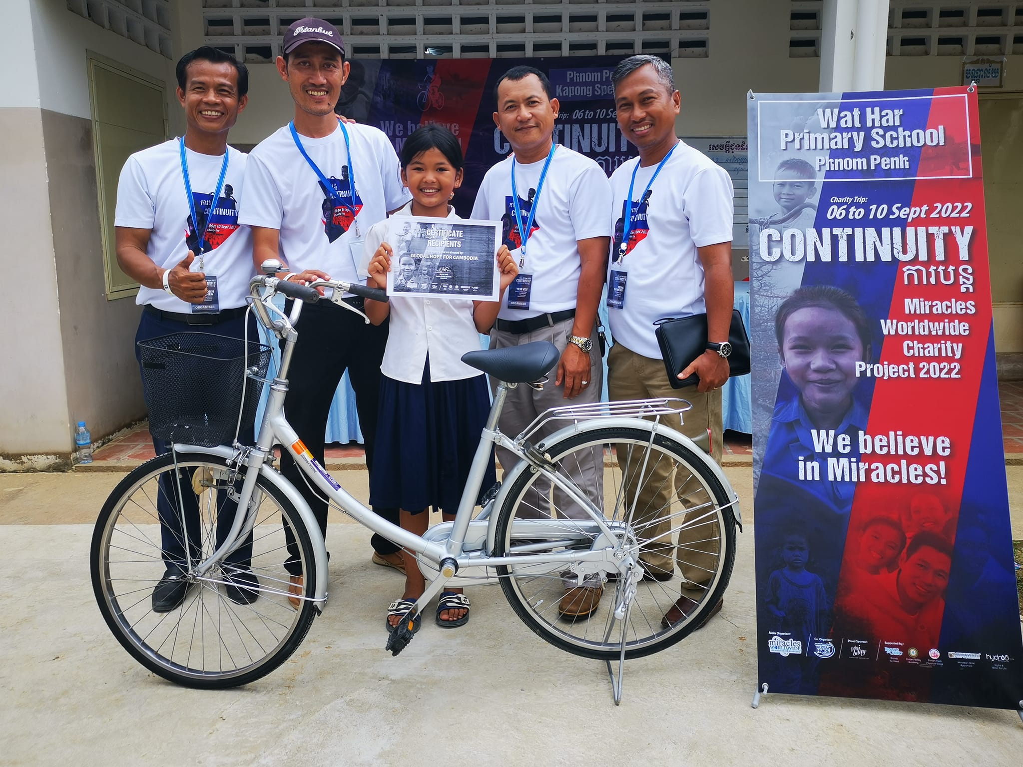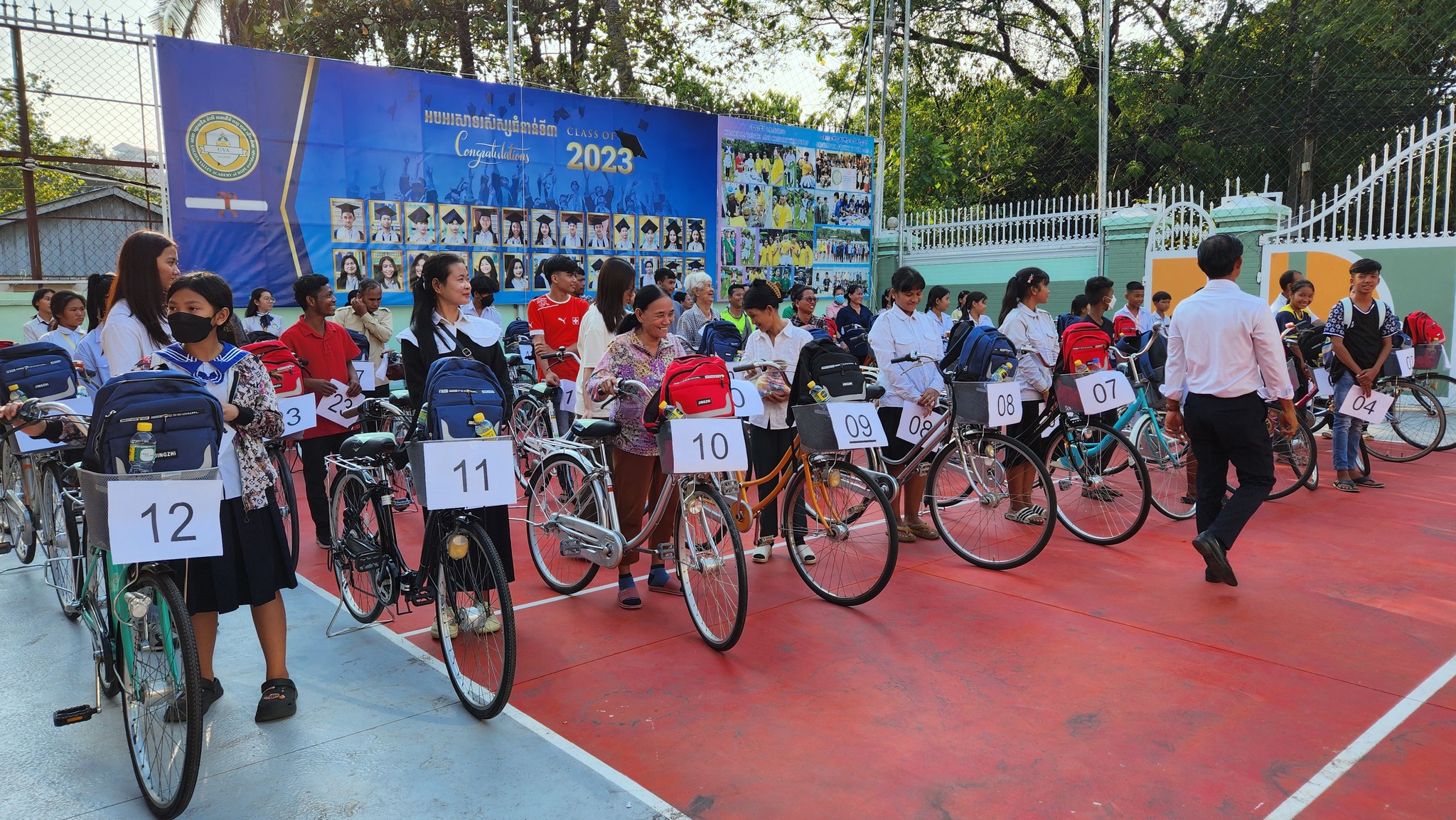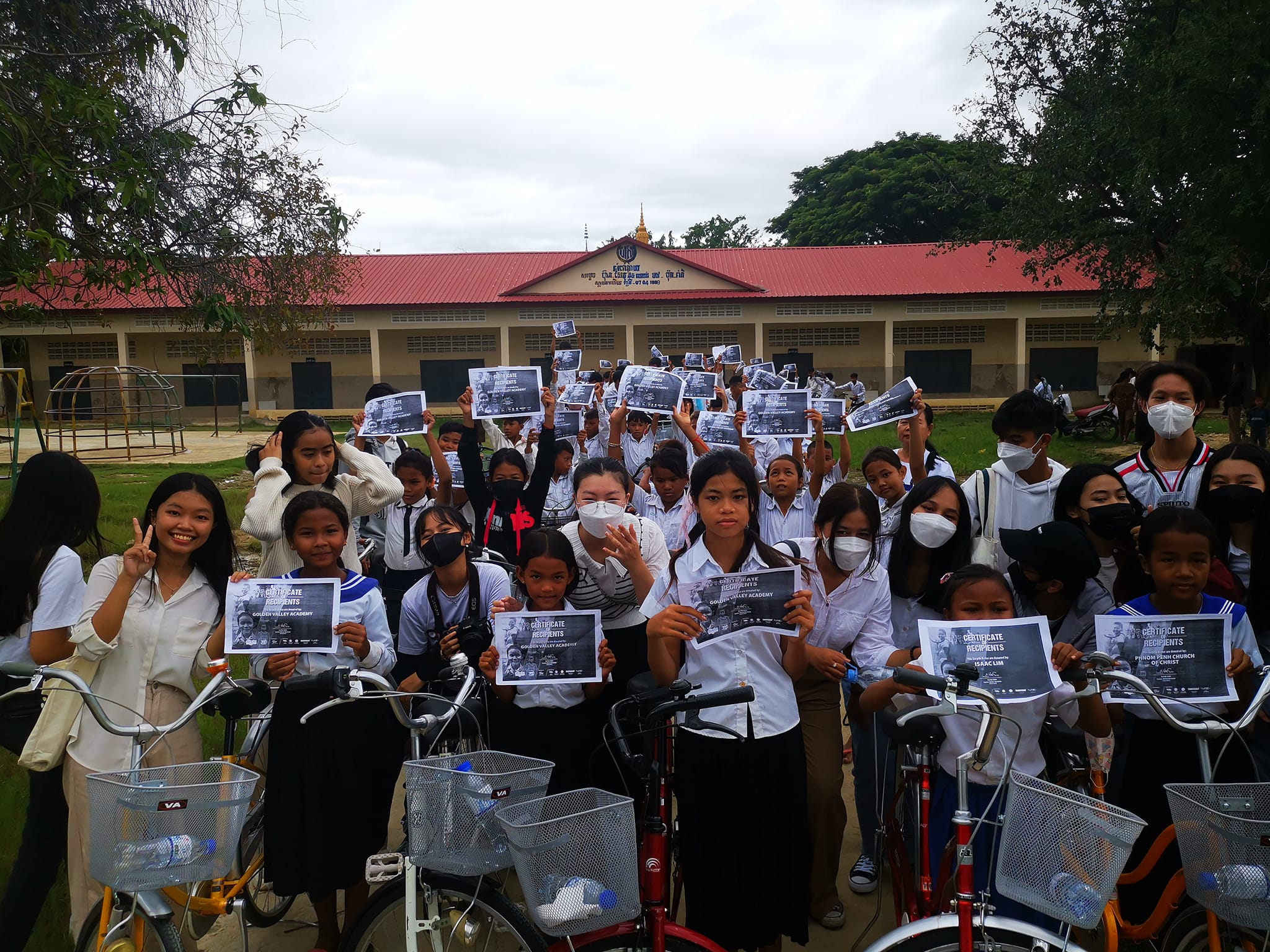 Another great day of success which 150 bicycles, 150 school bags, shoes, pencil case and color pens, plus sweaters from Goldfame Garments distributed to Hun Sen Prek Ruessey Primary School at Krong Takhmao, Kandal Province. We were honor to ve Ministry of Women Affair, Chan Sotheavy to come and grace the occasion. With Him everything is possible !