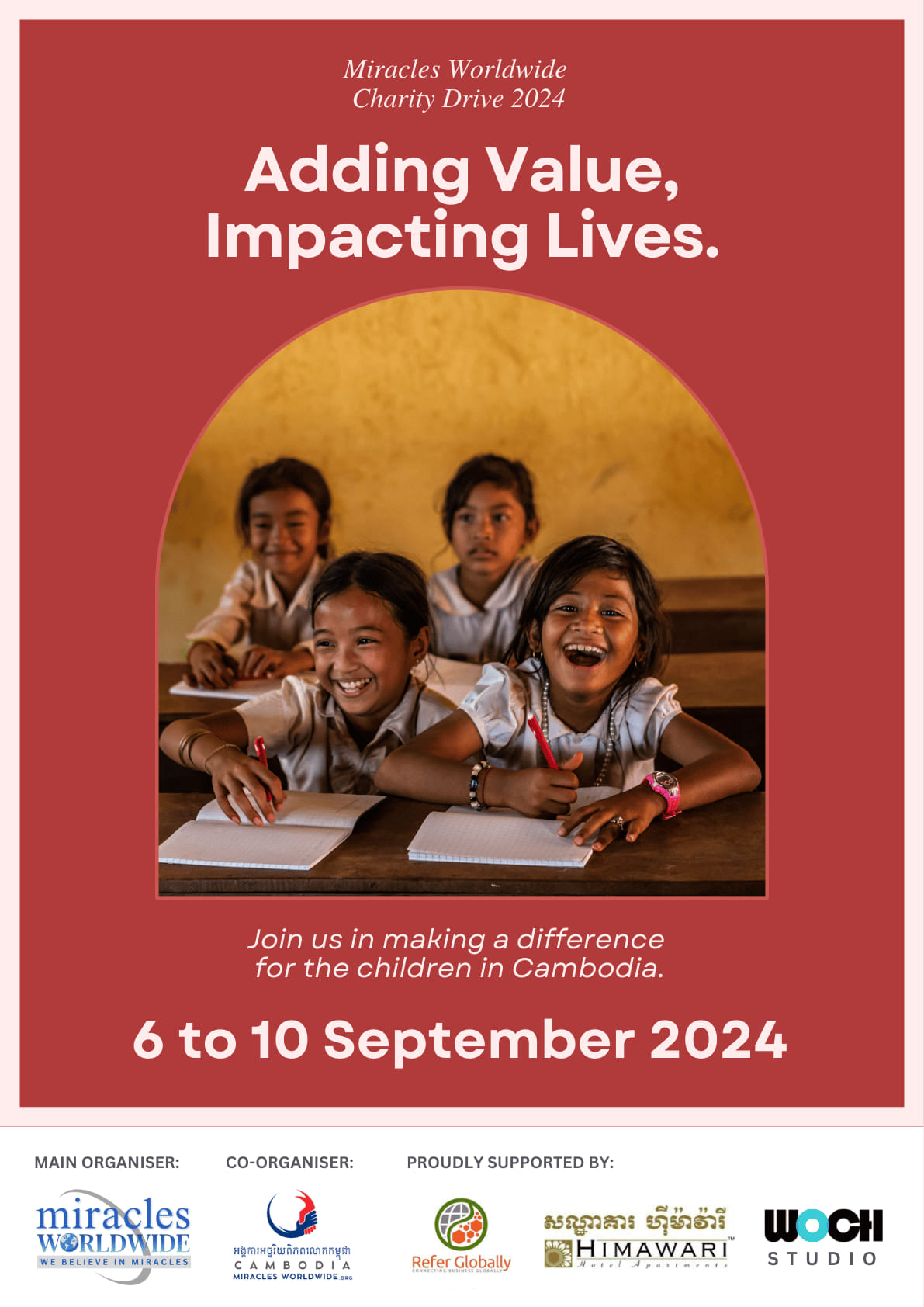 Together with our partners: co.Chairman, Mr Simon Chang and CEO, Mr Randy Ng, we are excited to launch our Miracles Worldwide Cambodia NGO on 09.09.2024. We pray for miracle and great work that has already prepared for us.